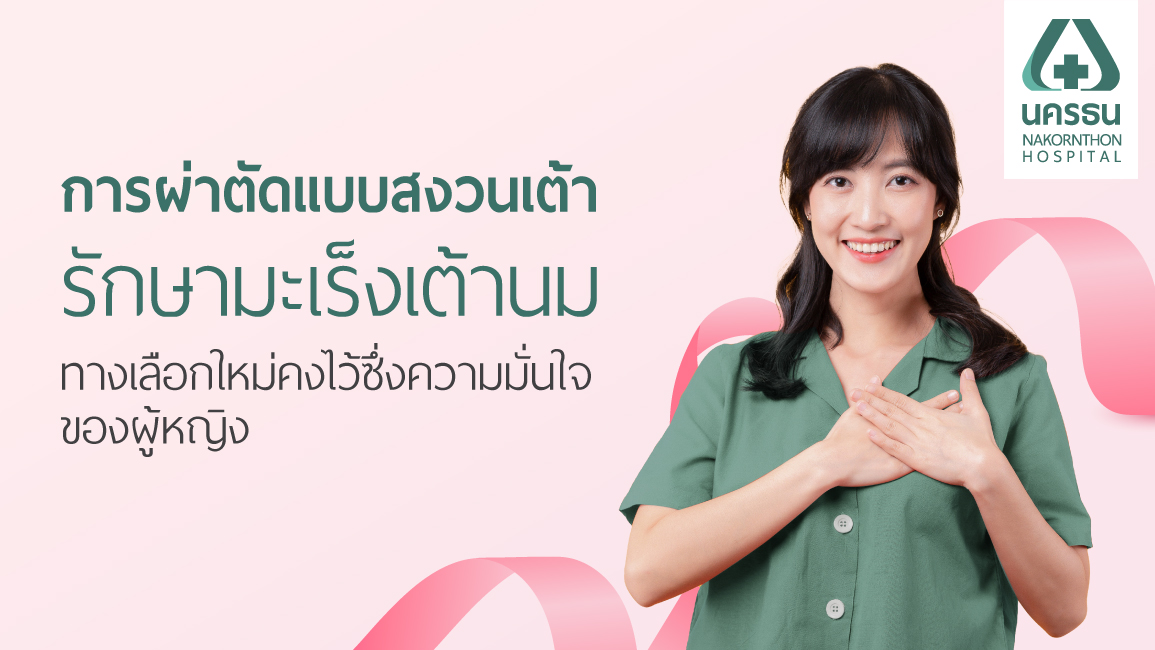 การผ่าตัดเต้านมแบบสงวนเต้านม เป็นแนวทางที่ทันสมัยและมีประสิทธิภาพในการรักษามะเร็งเต้านม โดยให้ผู้ป่วยสามารถรักษาทั้งชีวิตและรูปลักษณ์ ไว้ได้พร้อมกัน โดยศูนย์รักษ์เต้านม โรงพยาบาลนครธน เรามุ่งมั่นนำเสนอทางเลือกที่ปลอดภัย ทันสมัย และอ่อนโยนที่สุดแก่ผู้ป่วยมะเร็งเต้านม ด้วยทีมศัลยแพทย์เฉพาะทางมากประสบการณ์ และเทคโนโลยีที่ทันสมัย การผ่าตัดแบบสงวนเต้านมไม่เพียงช่วยขจัดเซลล์มะเร็งอย่างมีประสิทธิภาพ แต่ยังช่วยให้คุณภาพชีวิตของผู้ป่วยให้กลับมาใช้ชีวิตอย่างมั่นใจอีกครั้ง หากคุณหรือคนที่คุณรักกำลังเผชิญกับโรคมะเร็งเต้านม อย่าปล่อยให้ความกลัวเป็นตัวกำหนดอนาคต มาร่วมก้าวข้ามโรคร้ายไปพร้อมกับการรักษาที่เข้าใจคุณในทุกมิติ ทั้งด้านร่างกายและจิตใจ ทั้งนี้สามารถปรึกษาหรือสอบถามข้อมูลจากแพทย์ออนไลน์ได้เลย