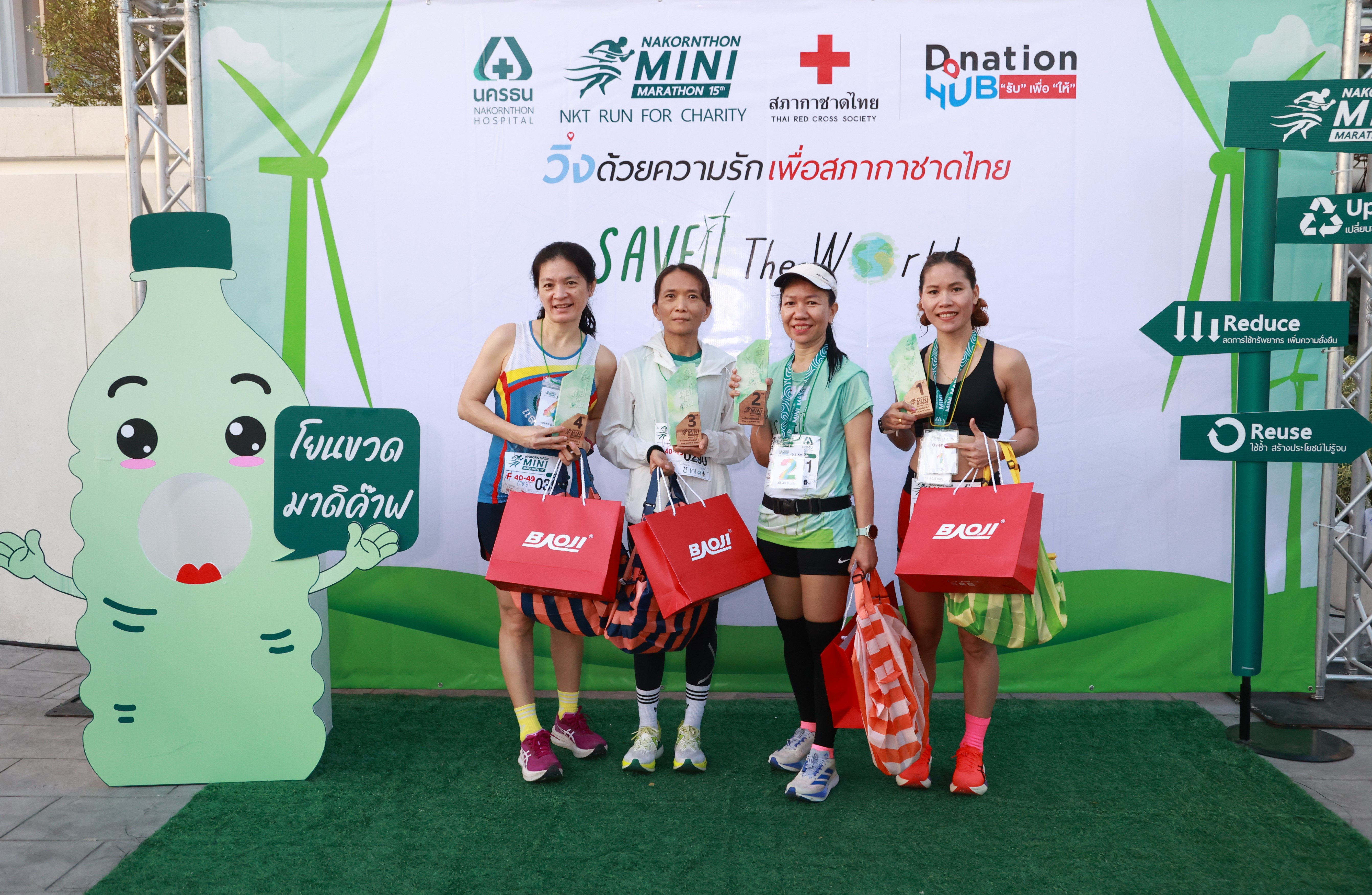 พร้อมด้วย คุณธวัชชัย ทองสิมา ผู้อำนวยการสายงานองค์กรสัมพันธ์และกิจกรรมสังคม โรงพยาบาลนครธน ได้กล่าวรายงานถึงวัตถุประสงค์ของการจัดงานในปีนี้ว่า นอกจากจะส่งเสริมให้ประชาชนได้ออกกำลังกายแล้ว ทุกกิจกรรมยังถูกออกแบบมาเพื่อรณรงค์เรื่อง “การอนุรักษ์สิ่งแวดล้อม” อย่างจริงจัง โดยมีการนำขยะพลาสติกมาผลิตเป็นเสื้อวิ่ง เหรียญ โล่รางวัล และของที่ระลึก ผ่านกระบวนการ Upcycle รวมถึงบางขั้นตอนการผลิตยังลดการใช้น้ำ ลดพลังงาน ลดการปล่อยก๊าซ CO2 เพื่อลดผลกระทบต่อสิ่งแวดล้อมอย่างยั่งยืน (Reduce) ภายในงานยังมีการรณรงค์ลดขยะให้เป็นพลังงาน โดยการคัดแยกขยะ พร้อมส่งต่อขยะกำพร้าไปเป็นพลังงานสะอาดทดแทนถ่านหิน อีกทั้งเหรียญยังสามารถนำกลับไปใช้ต่อเป็นที่รองแก้วได้ (Reuse) ทุกอย่างจึงสอดคล้องกับแนวคิดของการจัดงานในปีนี้