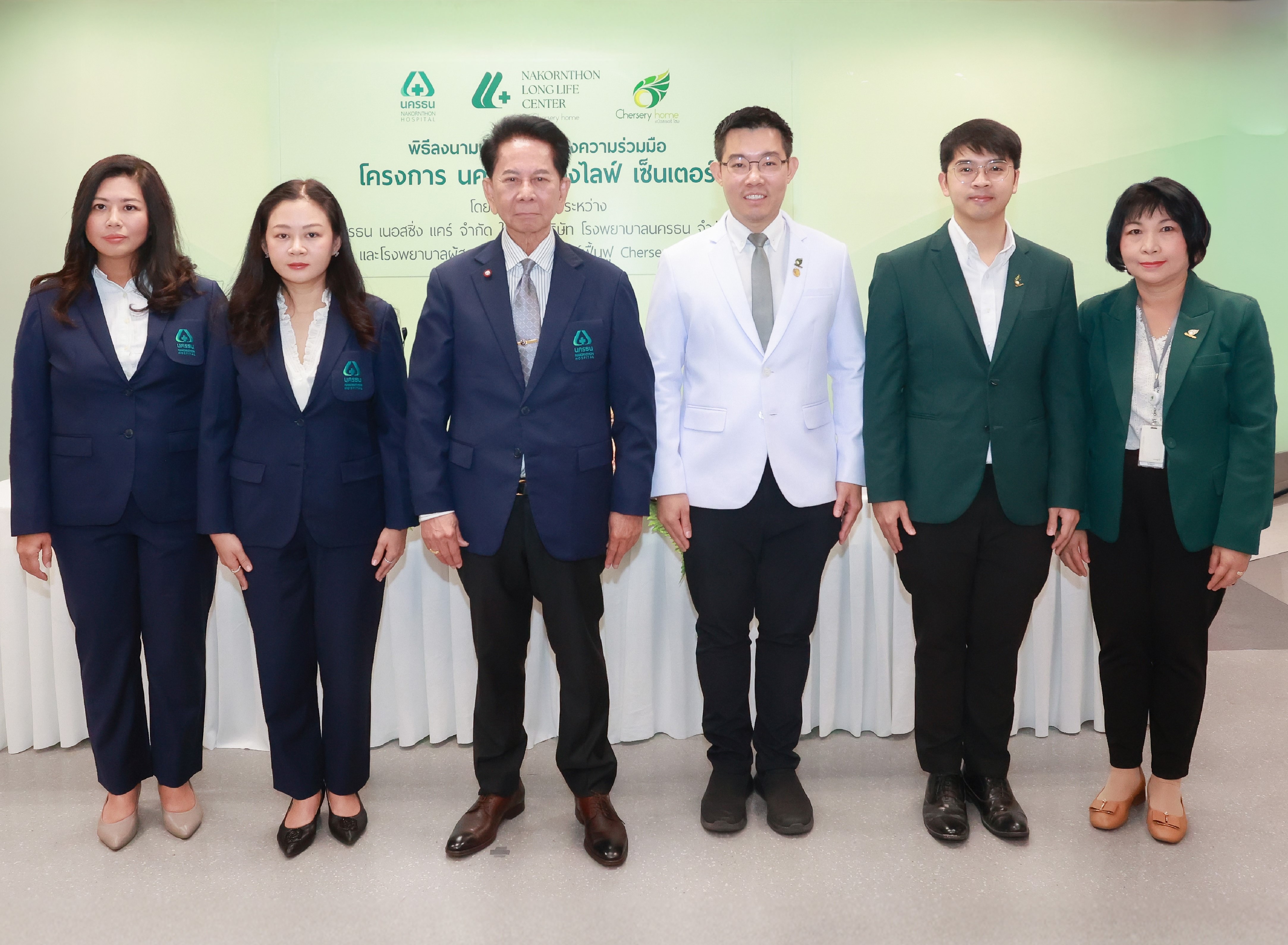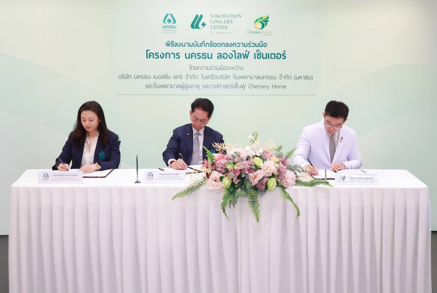 พิธีลงนามบันทึกข้อตกลงความร่วมมือ "โครงการ นครธน ลองไลฟ์เซ็นเตอร์" โดยความร่วมมือระหว่างบริษัท นครธน เนอสซิ่ง แคร์ จำกัด ในเครือบริษัท โรงพยาบาลนครธน จำกัด (มหาชน) และ โรงพยาบาลผู้สูงอายุ และเวชศาสตร์ฟื้นฟู Chersery Home