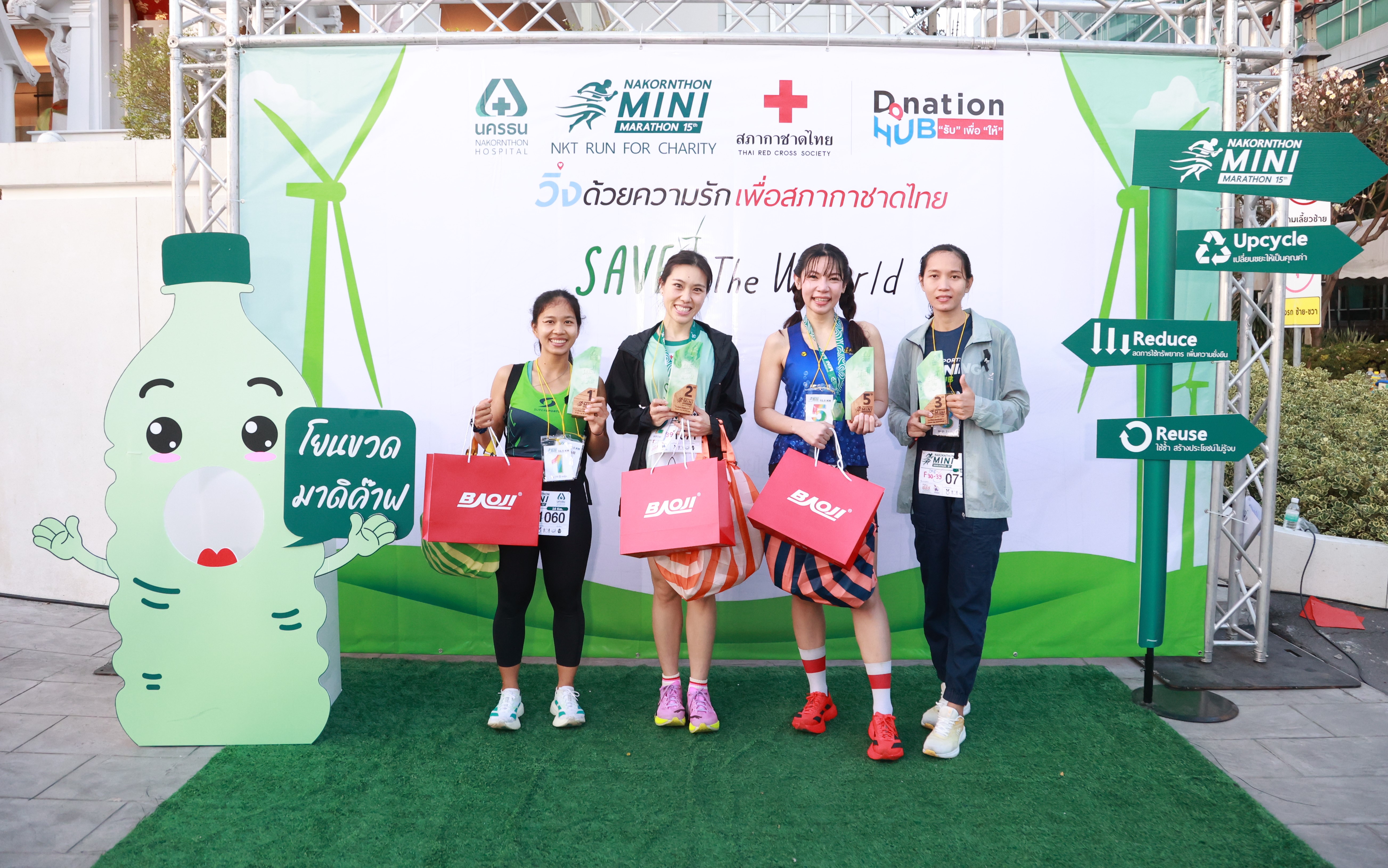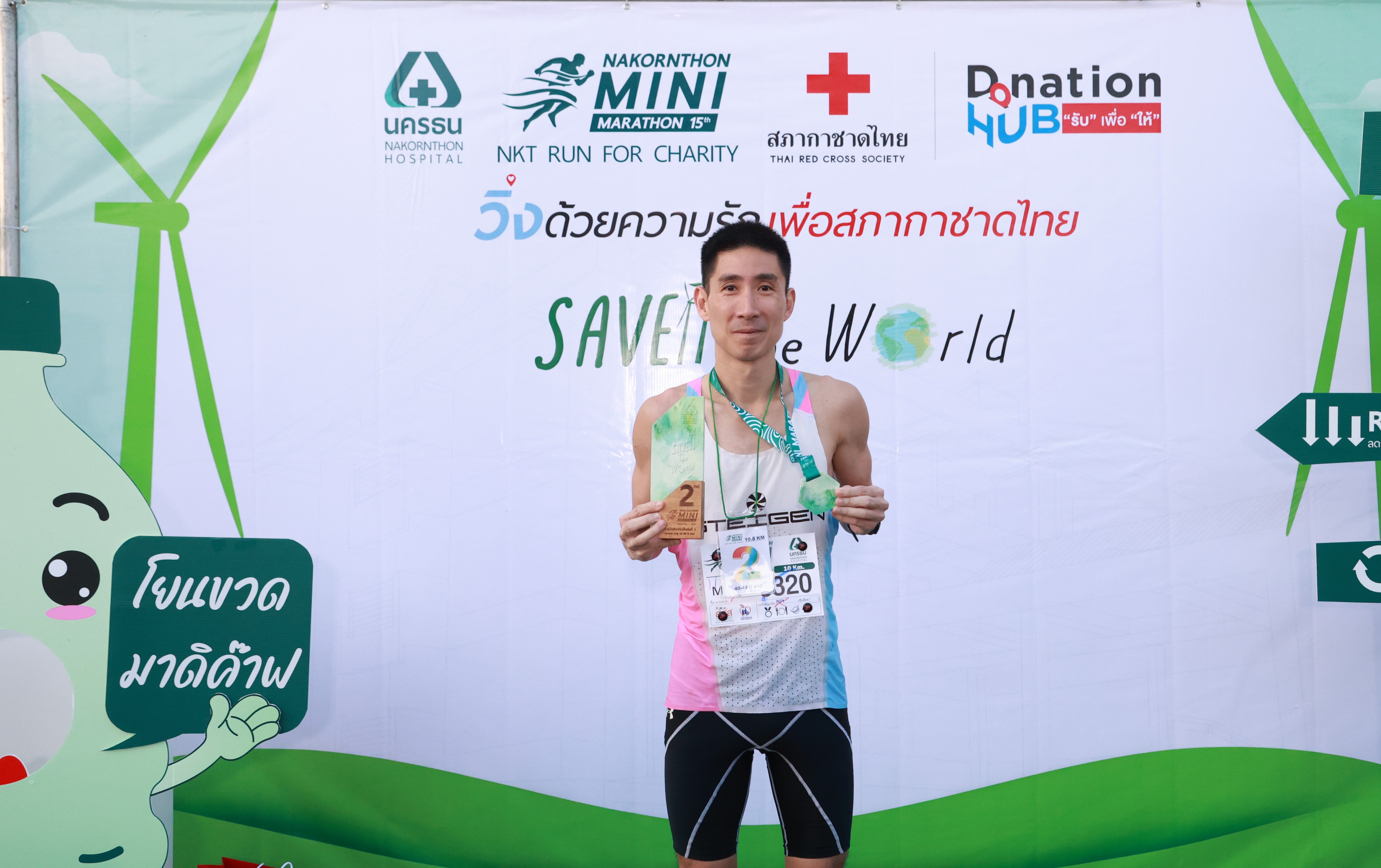 พร้อมด้วย คุณธวัชชัย ทองสิมา ผู้อำนวยการสายงานองค์กรสัมพันธ์และกิจกรรมสังคม โรงพยาบาลนครธน ได้กล่าวรายงานถึงวัตถุประสงค์ของการจัดงานในปีนี้ว่า นอกจากจะส่งเสริมให้ประชาชนได้ออกกำลังกายแล้ว ทุกกิจกรรมยังถูกออกแบบมาเพื่อรณรงค์เรื่อง “การอนุรักษ์สิ่งแวดล้อม” อย่างจริงจัง โดยมีการนำขยะพลาสติกมาผลิตเป็นเสื้อวิ่ง เหรียญ โล่รางวัล และของที่ระลึก ผ่านกระบวนการ Upcycle รวมถึงบางขั้นตอนการผลิตยังลดการใช้น้ำ ลดพลังงาน ลดการปล่อยก๊าซ CO2 เพื่อลดผลกระทบต่อสิ่งแวดล้อมอย่างยั่งยืน (Reduce) ภายในงานยังมีการรณรงค์ลดขยะให้เป็นพลังงาน โดยการคัดแยกขยะ พร้อมส่งต่อขยะกำพร้าไปเป็นพลังงานสะอาดทดแทนถ่านหิน อีกทั้งเหรียญยังสามารถนำกลับไปใช้ต่อเป็นที่รองแก้วได้ (Reuse) ทุกอย่างจึงสอดคล้องกับแนวคิดของการจัดงานในปีนี้